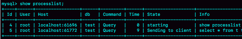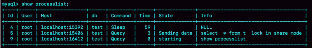 若客户端使用–quick参数,会使用mysql_use_result方法:读一行处理一行。假设某业务的逻辑较复杂,每读一行数据以后要处理的逻辑若很慢,就会导致客户端要过很久才取下一行数据,可能就会出现上图结果。