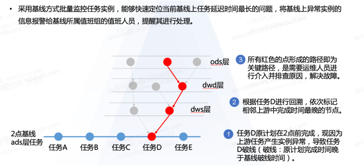 值班人员在收到报警信息后,就要去排查到底是哪个任务延迟了,这时候就需要查看关键路径,向上溯源,最终精准找出问题的源头。
