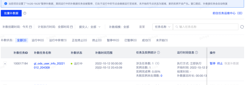 第四步:前往补数据任务运维列表,查看补数据实例执行情况