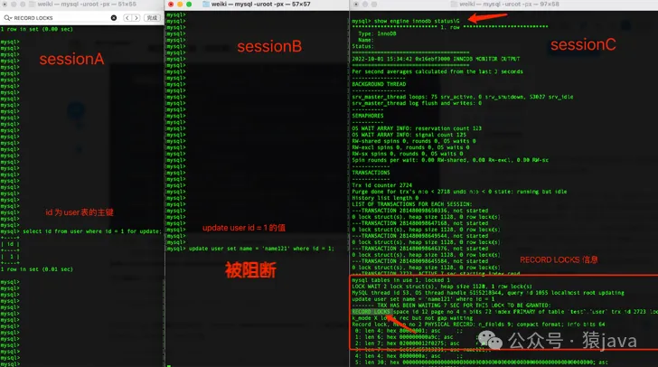 2. 举例说明为了更好的说明Record Lock,我们以下面的顺序执行流来进行验证: