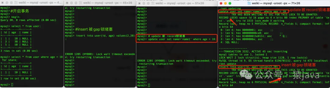 where age = 10 for share;insert into user(id,age) values(2,20);