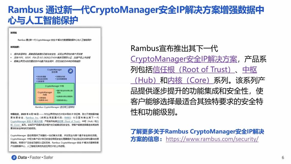 Rambus新一代CryptoManager安全IP解决方案:以逐步提升的功能集成和安全性,筑实数据中心与AI基石