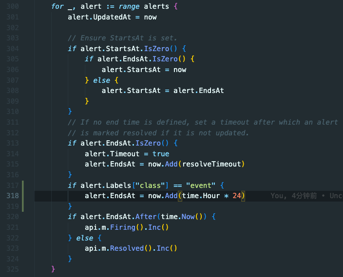 在Api的接收过程中,会确保每个Alert的StartsAt和EndsAt有值。