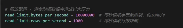 read_limit.rows_per_second = 1000 # 每秒读取行数限制1.2.