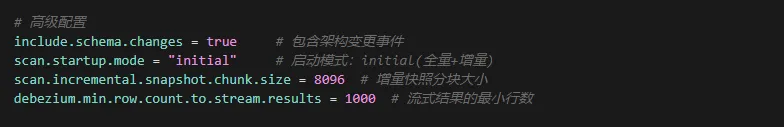 对于首次同步,使用initial模式;对于增量同步,可使用latest模式调整snapshot.fetch.size以平衡内存使用和网络开销设置合理的chunk.size.rows,大表可适当增加以提高并行效率三、转换优化