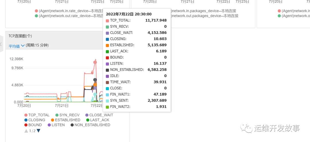 但是发现在问题时间点,前置机的连接数非常高(也许这就是问题的关键)。