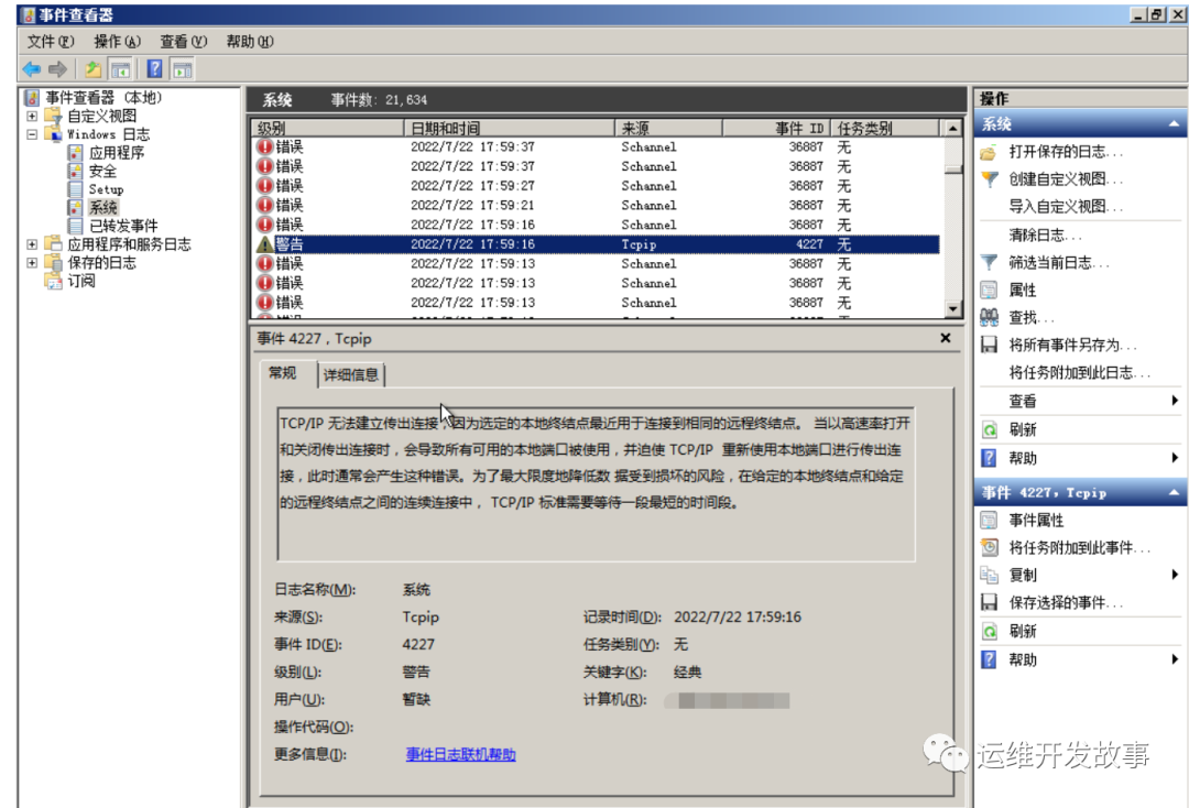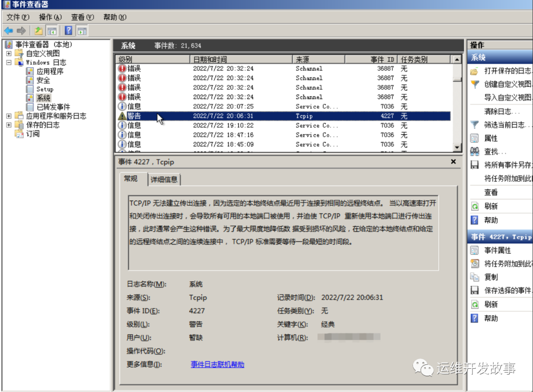 然后就去找Windows的事件日志了,日志实在是太多了,多的发麻,看的头晕脑花,不过功夫不负有心人,还是发现点问题,如下: