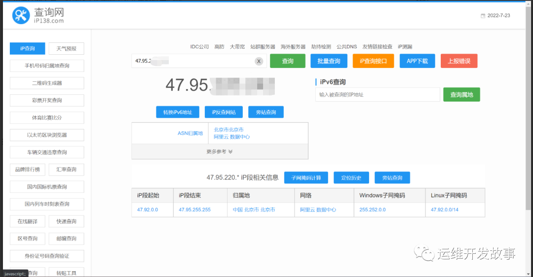 然后在网上查,发现这个IP是阿里云北京数据中心的。