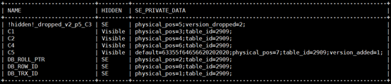 一文为你解读MySQL8.0 Instant DDL源码实现 文章中详细介绍了表元数据、列元数据与行格式的变化,下面仅展示 INSTANT DROP COLUMN 操作后的列元数据。