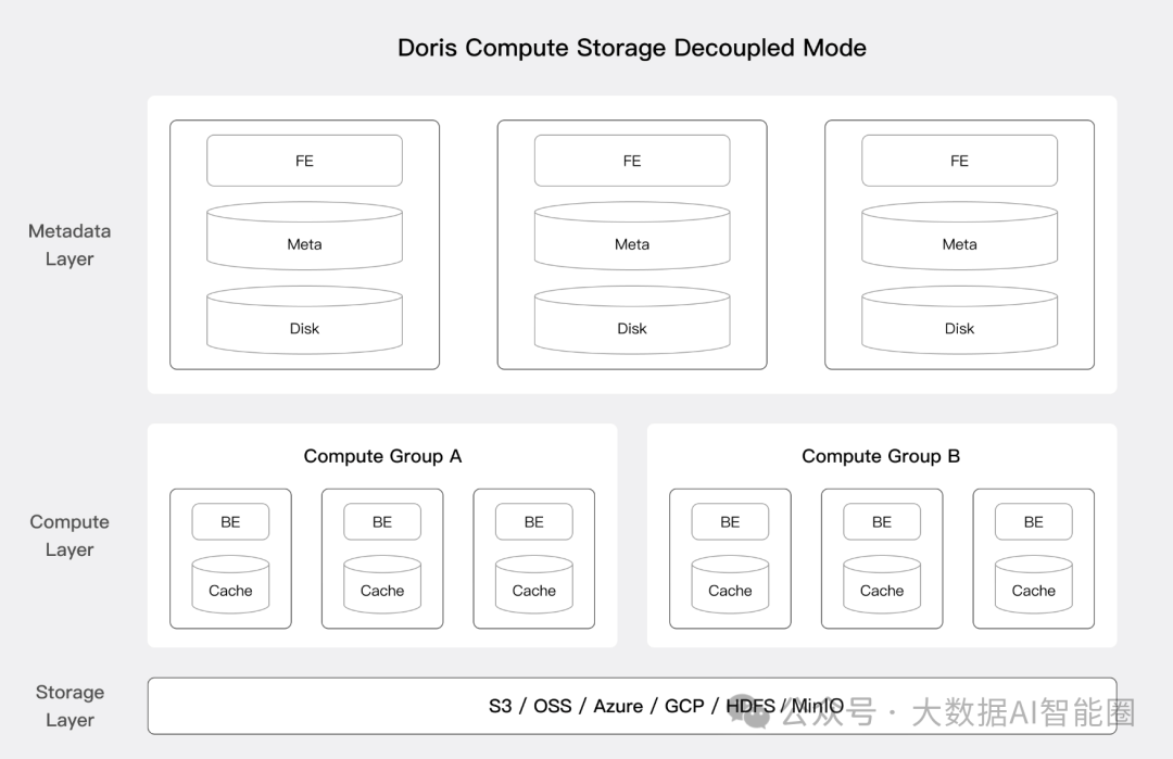 从Doris3.0版本开始,可以使用统一的共享存储层作为数据存储空间,独立扩展存储容量和计算资源,实现最佳性能和成本平衡。