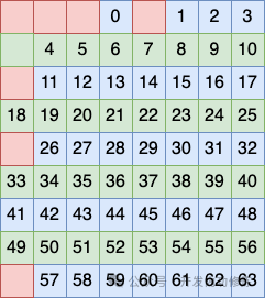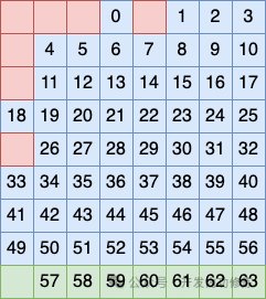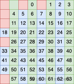 第二个行分组方式是将 2、3、7、8 行看做一个分组,在这个分组中再安排一个比特作为校验码