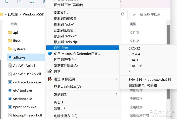 7-Zip支持CRC-32、CRC-64、SHA256、SHA1以及BLAKE2sp等Hash算法,很好地弥补了Windows自带Hash算法的不足。可惜的是7-Zip没有提供非常常见的MD5,如果需要MD5的Hash,还得另寻他法。