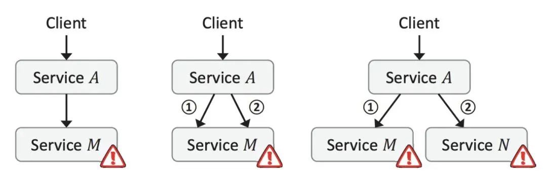 比如在一个转账服务下,需要查询分别两者的卡号, 再查询 A 时成功了,但查询 B 失败,对于查卡号这个事件就算失败了,比如查询成功率只有 50%, 那对于查询两者卡号这个成功率只有 50% * 50% = 25% 了, 一个事件调用的服务次数越多,那成功率就会越低。
