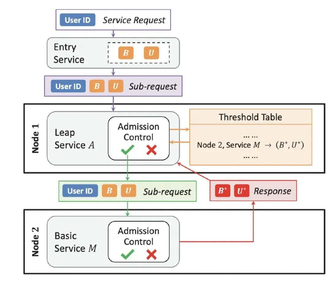 因为引入了用户优先级,那就和业务优先级组成了一个二维控制平面,根据负载情况,决定这台服务器的准入优先级(B,U),当过来的请求业务优先级大于 B,或者业务优先级等于 B,但用户优先级高于 U 时,则通过,否则决绝。
