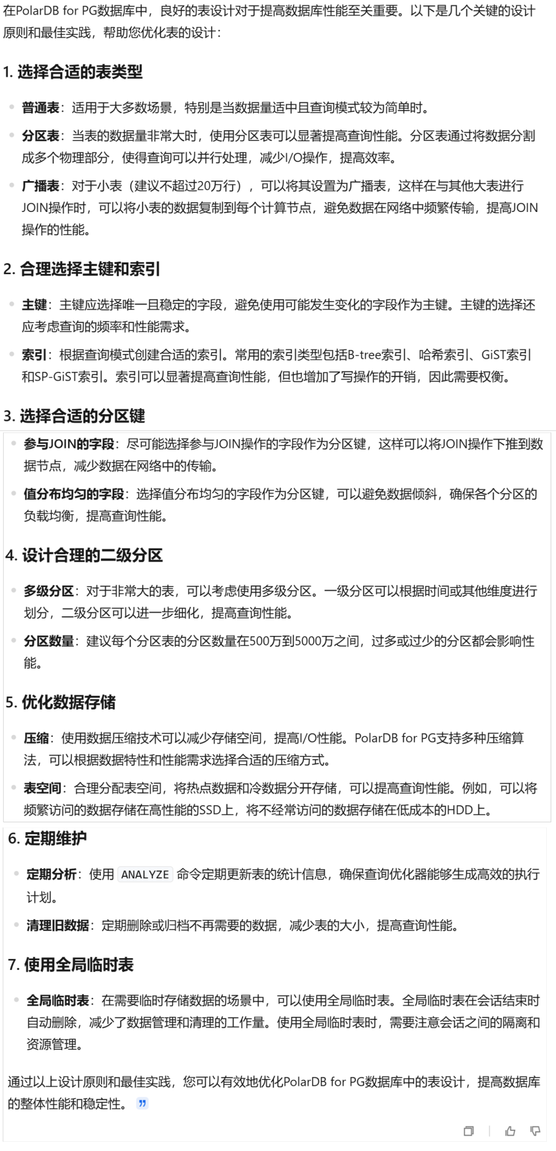 Q:在PolarDB for PG 数据库中如何做好表设计