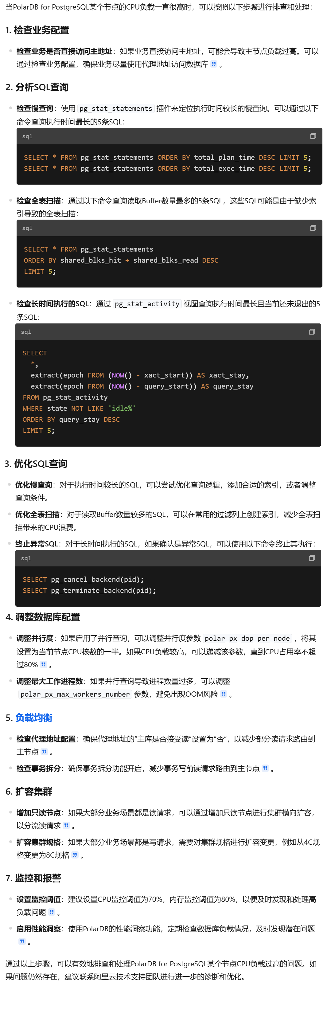 Q:PolarDB for PG 某个节点CPU负载一直很高,如何处理