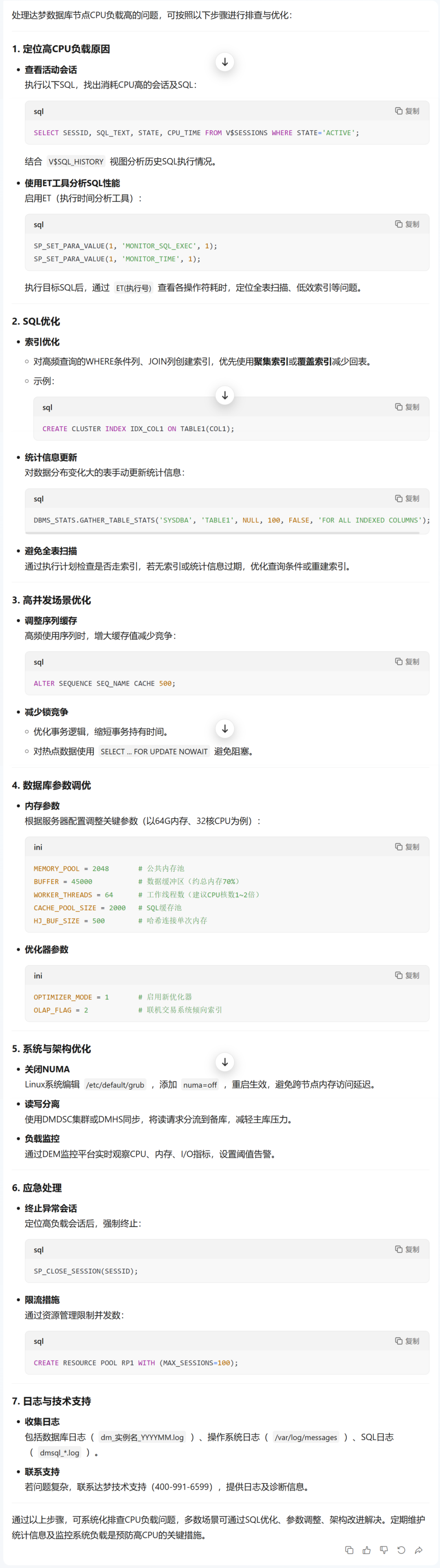 Q:DM 数据库节点CPU负载一直很高,如何处理