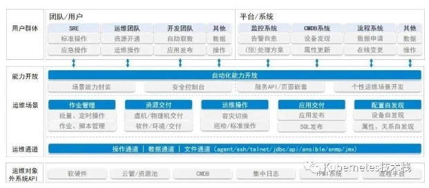 提高效率: 由程序自动化操作,有效地降低运维人力资源的投入,也让运维人员的精力得以释放并投向更为重要的领域。操作的标准化: 将原来许多复杂、易错的手工操作实现统一运维操作入口,实现运维操作白屏化,提升运维操作的可管理性;同时,减少由于运维人员情绪带来手工误操作,避免“从删库到跑路”这样的悲剧的发生。运维经验能力的传承: 运维自动化工具将原来许多运维团队积累的经验以代码方式总结为各种运维工具,实现自动化和白屏化的运维操作。运维团队的后来者,可以有效地继承、重复使用并优化它们。这种代码化的工作传承,将个人能力转变为团队能力,并减少人员流动带来对工作的影响。构建自动化运维体系就必须以运维场景为基础,这些运维场景是在本企业内反复迭代和打造,是企业中最常用的运维场景。
