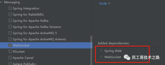 1、新建SpringBoot工程,选择web和WebSocket依赖
