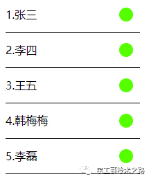 </style> <body> <div id="app"> <div v-for="item in list" class="item"> <span>{{item.id}}.{{item.name}}</span> <span :class=item.state==-1?"nowI":""></span> </div> </div> </body> <script src="./js/vue.min.js"></script> <script type="text/javascript"> var vm = new Vue({
