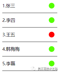 绿色代表正常,红色代表异常预期效果,未接收到请求前----->id为3的提交了异常,id为3的王五变成了红色