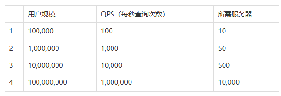 遏制云计算成本上升节省成本是实施边缘计算的主要动机之一。正如我们之前提到的,随着数据量和用户数量的增长,计算和存储的成本将呈指数级增长。一般来说,不同用户规模所需的服务器可以如下所示(粗略估计):