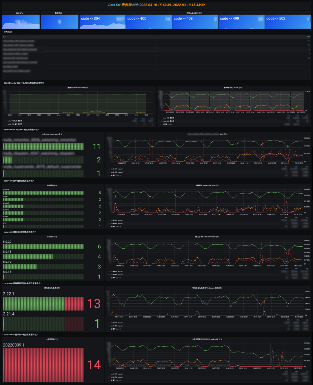 3、Code 异常分析在首页可以观察异常 code 分布,下钻到具体的 code 分析页,这里模拟分析一下 code=400 量增加的场景。