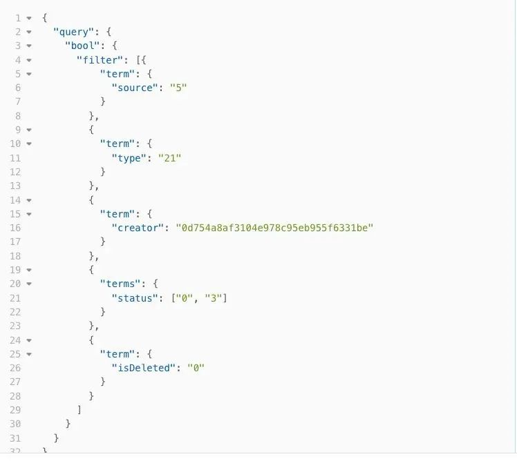 第一反应当然是用filter来代替match查询,一来filter可以缓存,另外避免这种无意义的模糊匹配查询,但是这个优化是有限的,并不是今天讲解的关键点,先忽略。