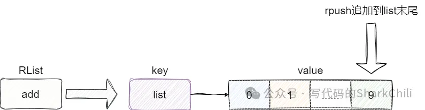 getList和上述bucket操作类似这里就不多追赘述,这里我们就看看add的实现细节,本质上它就是异步调用redis的RPUSH指令将元素追加到列表末尾,整体流程原理和上述set操作差不多,这里就不多做赘述了: