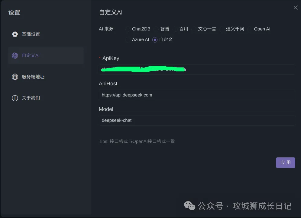 在探索AI配置选项时,你会发现现在支持了很多新的大模型哦!如果你心仪的大模型还没有被包括在内,别担心,你还可以自定义添加,比如DeepSeek就是一个不错的选择。