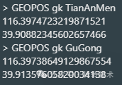 例子:查询gk中 天安门 和 故宫 的经纬度