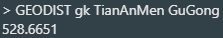 例子:查看gk中 天安门 和 故宫的距离(m)
