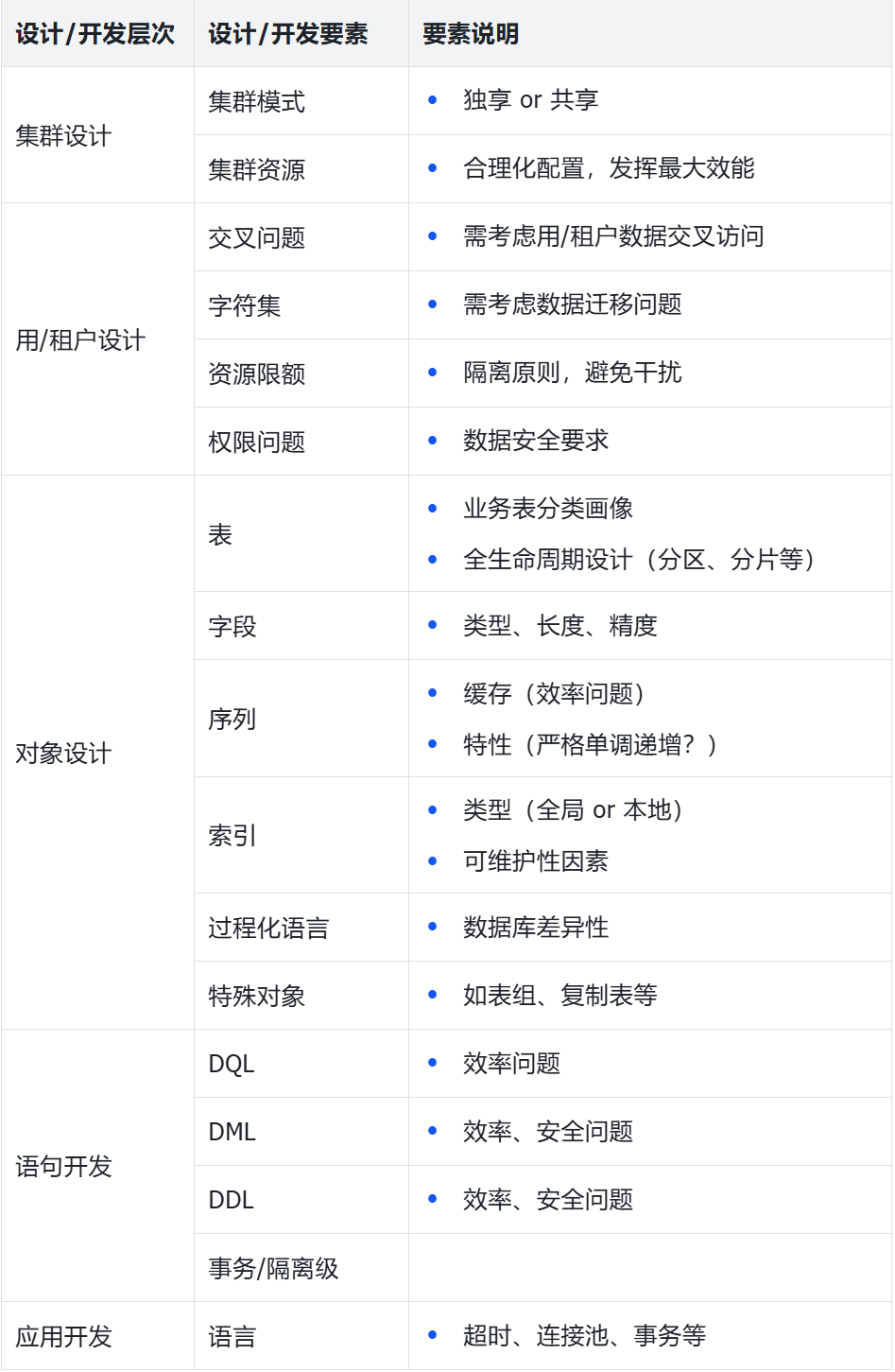 一种新的数据库,特别是分布式数据库,对于设计开发人员意味着全新的设计开发理念。这里需要一个实践学习的过程才能较好的掌握。下面罗列了部分开发设计工作中需要关注的问题,但还未覆盖全貌。