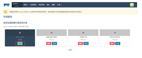 修改为 BGP 网络模式,在 system 项目中修改 calico-node daemonset