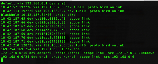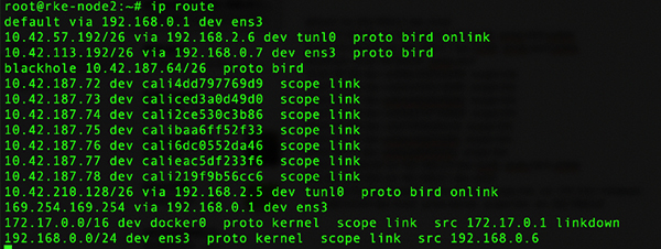 修改完成后对节点进行重启,等待恢复后查看主机路由,与 ipip 最大区别在于去往其他节点的路由,由 Tunnel0 走向网络网卡。
