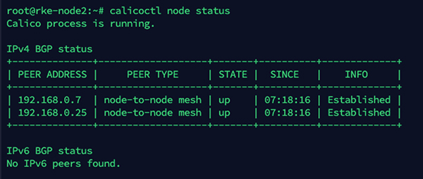 Binary 方式在集群里面的一台 worker 节点安装(比如 RR),calicoctl 会检测 bird/felix 的运行状态。在非 calico node 节点运行只能使用部分命令,不能运行 calico node 相关命令。