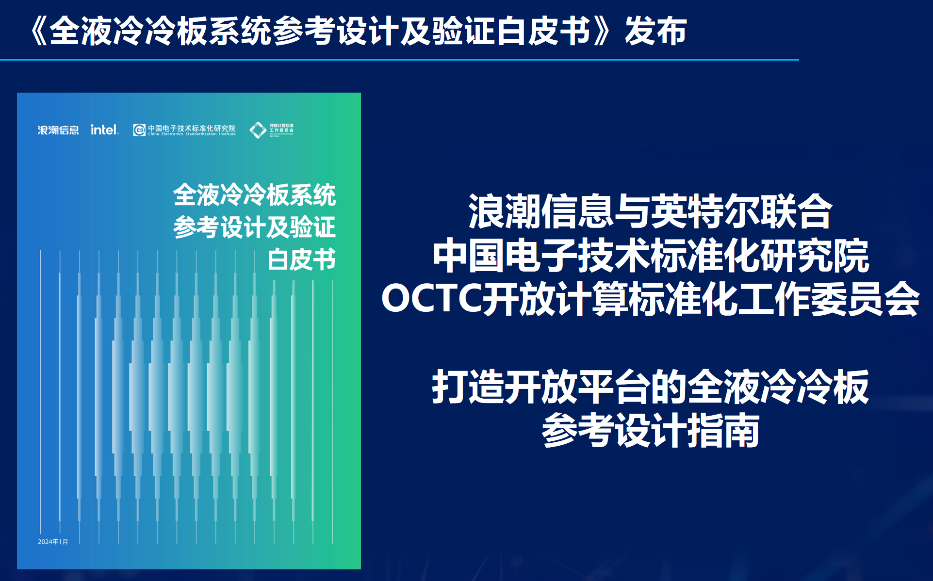 同时,浪潮信息、英特尔还与中国电子技术标准化研究院、开放计算标准工作委员会(OCTC)联合发布了《全液冷冷板系统参考设计及验证白皮书》,详细介绍了冷板式液冷技术优化方向,冷板全液冷服务器系统架构设计、全液冷服务器冷板关键部件设计、全液冷服务器冷板性能测试,铝冷板全液冷方案设计与测试,以及冷板液冷技术应用拓展等内容,对全液冷服务器设计和规模应用中面临的主要难点和痛点提供了设计参考,对全液冷冷板技术在通用产品上实现快速导入和推广具有重要指导意义。。
