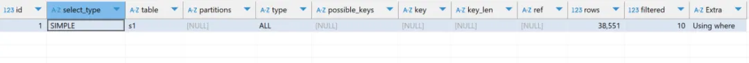 当然进行关联查询时被驱动表得到的就是驱动表的id,如下返回的就是s1.id: