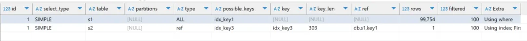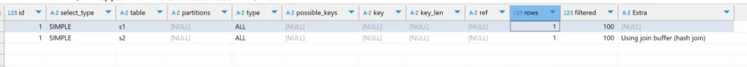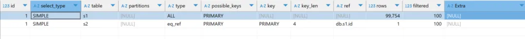 从执行计划就可以看出,s1就是驱动表,s2就是被驱动表: