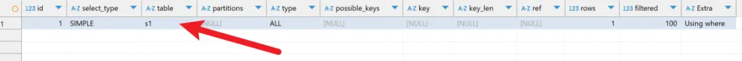 table字段含义比较简单,它表示当前查询计划所针对的数据表,例如下面这个简单查询语句: