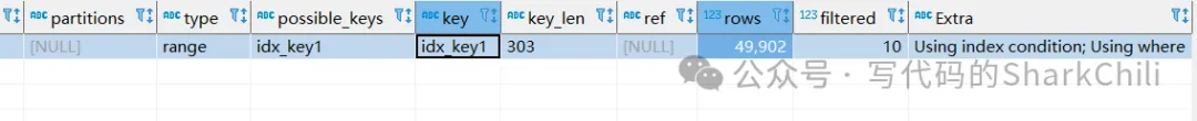 从笔者执行计划来看,可能会扫描49902,只有大约10%的符合要求: