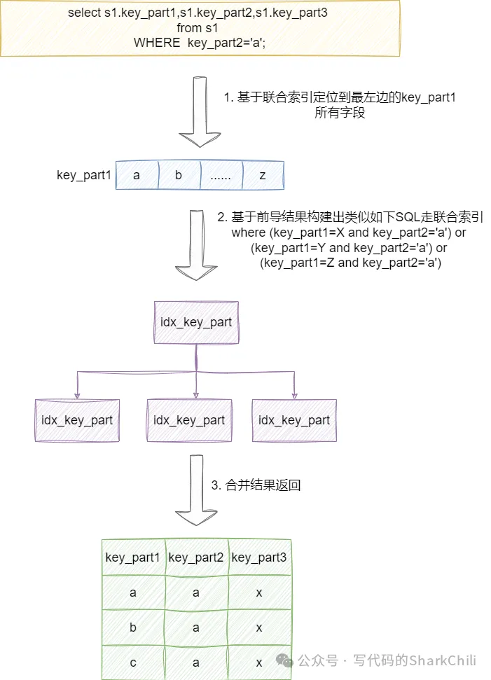 这里我们也简单补充一下索引跳越的工作机制,以我们上述的SQL为例,其底层本质工作过程为: