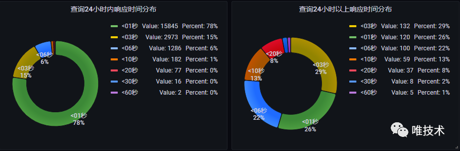 下图是实际生产环境的数千个应用真实运行数据,查询24小时时间范围内日志和24小时以上时间范围日志的耗时对比。