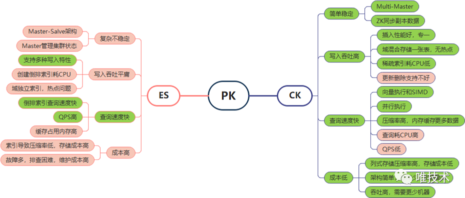 通过对日志的应用场景分析,我们发现万亿级别的日志,真正能被查询的日志数量是非常非常少的,这意味着ES对所有日志的分词索引,大多数是无效的,日志越多,这个分词消耗的资源越浪费。相对比clickhouse的MergeTree引擎专一的多,主要资源消耗是日志排序压缩和存储。