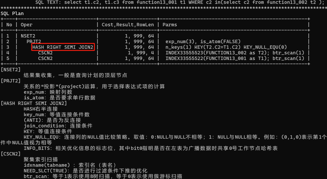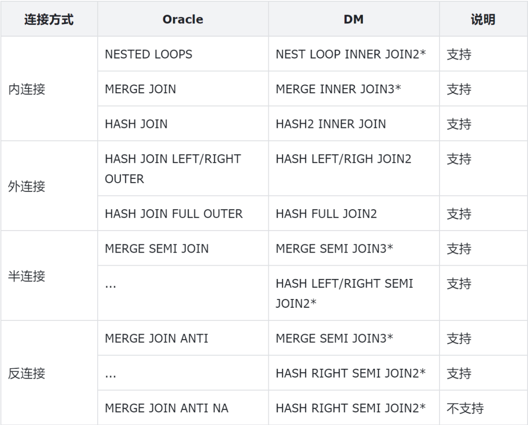 在半连接方面,达梦数据库支持了多种实现方式,包括HJ、SM等。