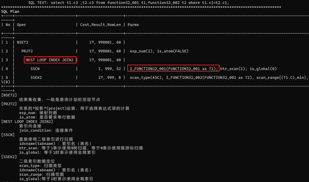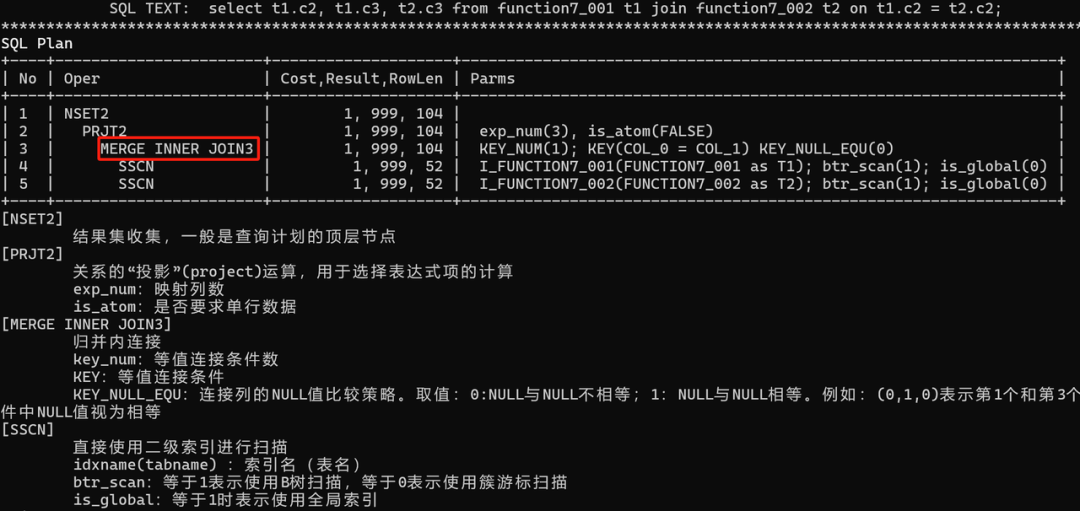在内连接方面,达梦数据库支持了标准的NL、SM、HJ。下图一为嵌套循环示例,下图二为合并排序示例。