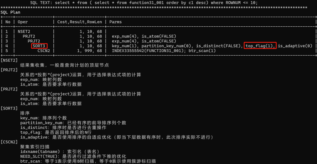 针对一般排序的STOP KEY的情况,则使用SORT+TOP_FLAG的方式来实现。