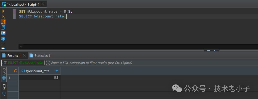 使用SELECT语句赋值时,我们必须使用:=作为赋值运算符,因为在SELECT语句中=用于比较操作。