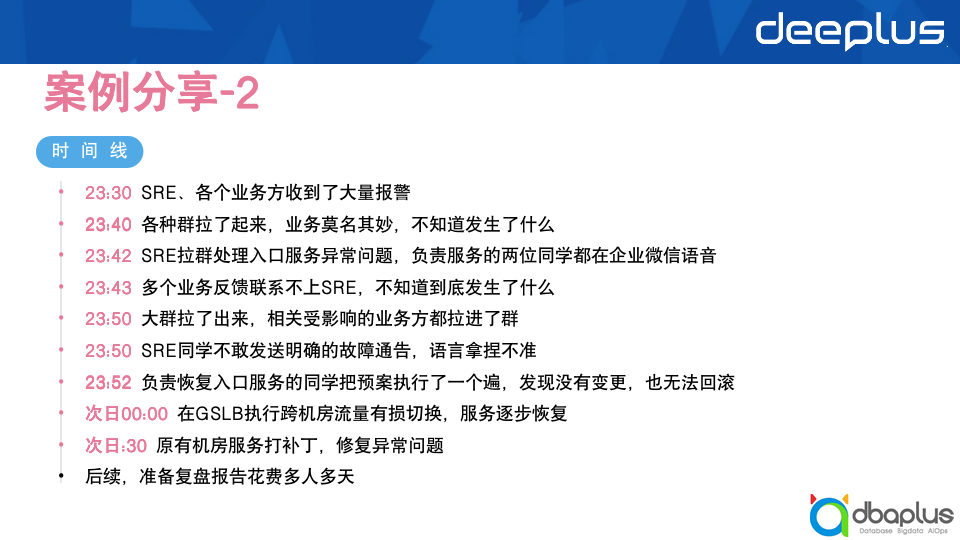 凌晨之后,原有机房的问题定位出来了,补丁迅速打上,异常的问题彻底修复了。后续,在对此事件进行复盘时,发现困难重重。因为故障处理过程中,涉及到大量的服务、组件和业务方,并且大家当时拉了一堆群,同样的消息被发送到了很多群。参与处理故障的同学在语音、电话和企微群都有进行过沟通和处理进展发布,整个事件的细节整理起来非常耗费人力和精力,准确性也很难保障。