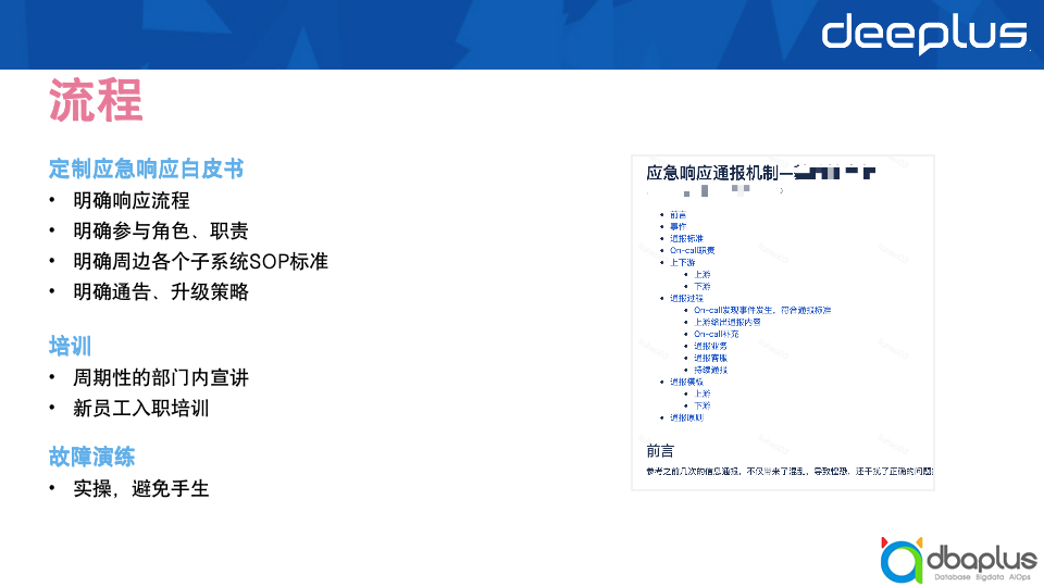 满足以上特征,才能做到故障来临时响应不慌乱,有条不紊地开展响应工作。